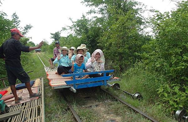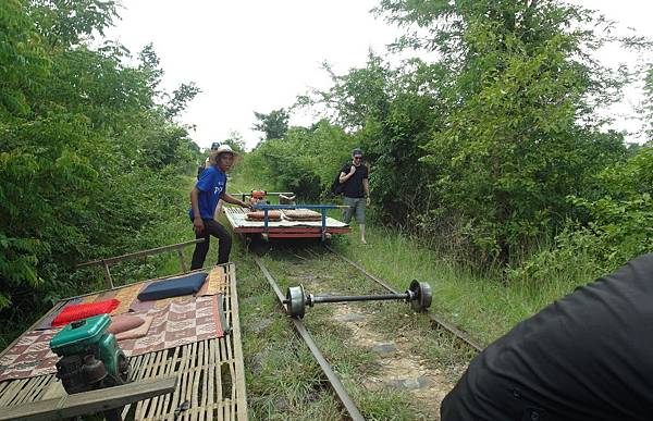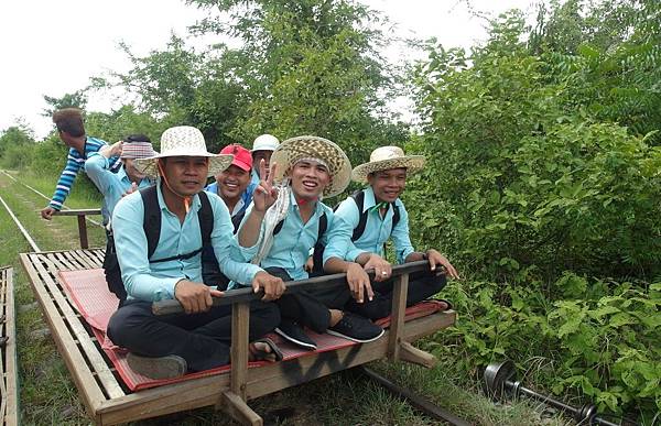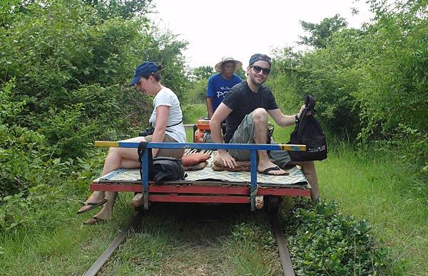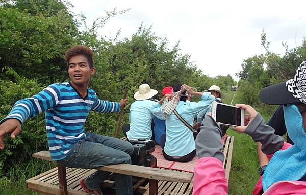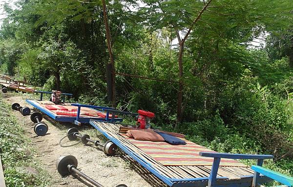 「竹火車」,利用輪子、馬達、竹板,簡單組合而成的火車,別小看這樣的組合,跑起來還挺快的呢! ((還貼心地為旅客準備了小墊子唷