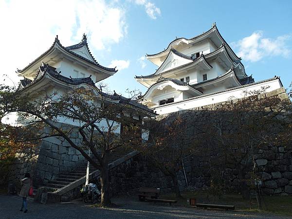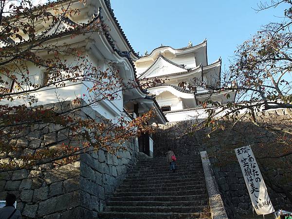 沿著指示走,爬上階梯後,即可看到上野城。